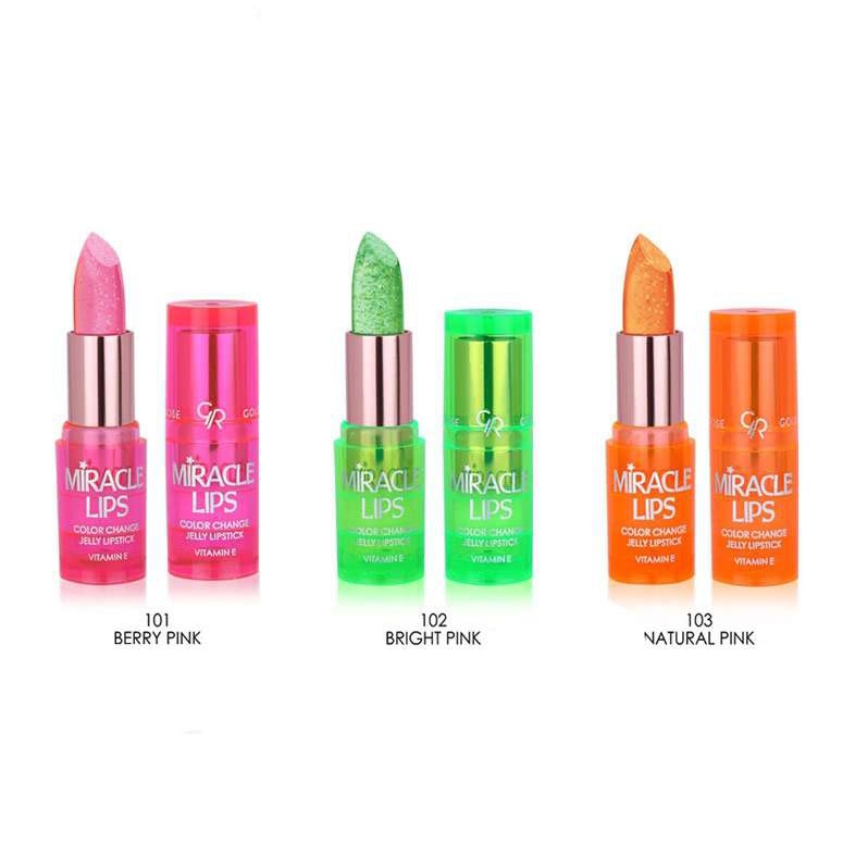 این رژ لب‌های خاص از سری Miracle Lips گلدن رز به عنوان رژ حرارتی / تغییر رنگی شناخته می‌شن. رنگ اولیه رژ (صورتی، سبز یا نارنجی) روی لب به‌محض تماس با دمای بدن و رطوبت تغییر می‌کنه و به یک طیف صورتی طبیعی تبدیل می‌شه.✨